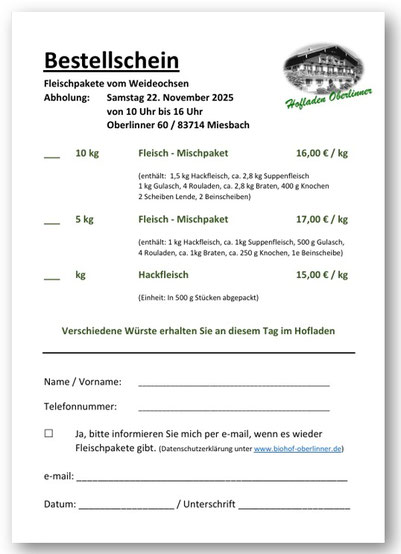Gerne können Sie auch im Hofladen einen Bestellzettel, mit Ihrem Namen, Telefonnummer und der Bestellmenge ausfüllen.